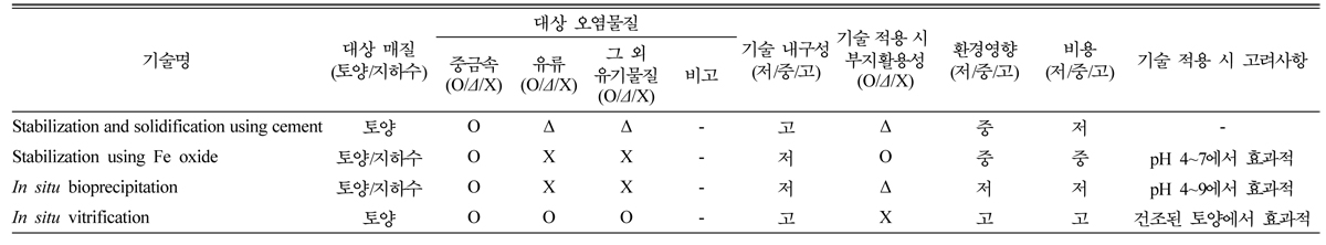 요소가 되며, 기술이 장기간 적용됨에 따라 부지의 환경매질이나 생태를 변화시킬 개연성도 있다. 반면, 안정화/고형화 기술과 공학적/행정적 노출차단