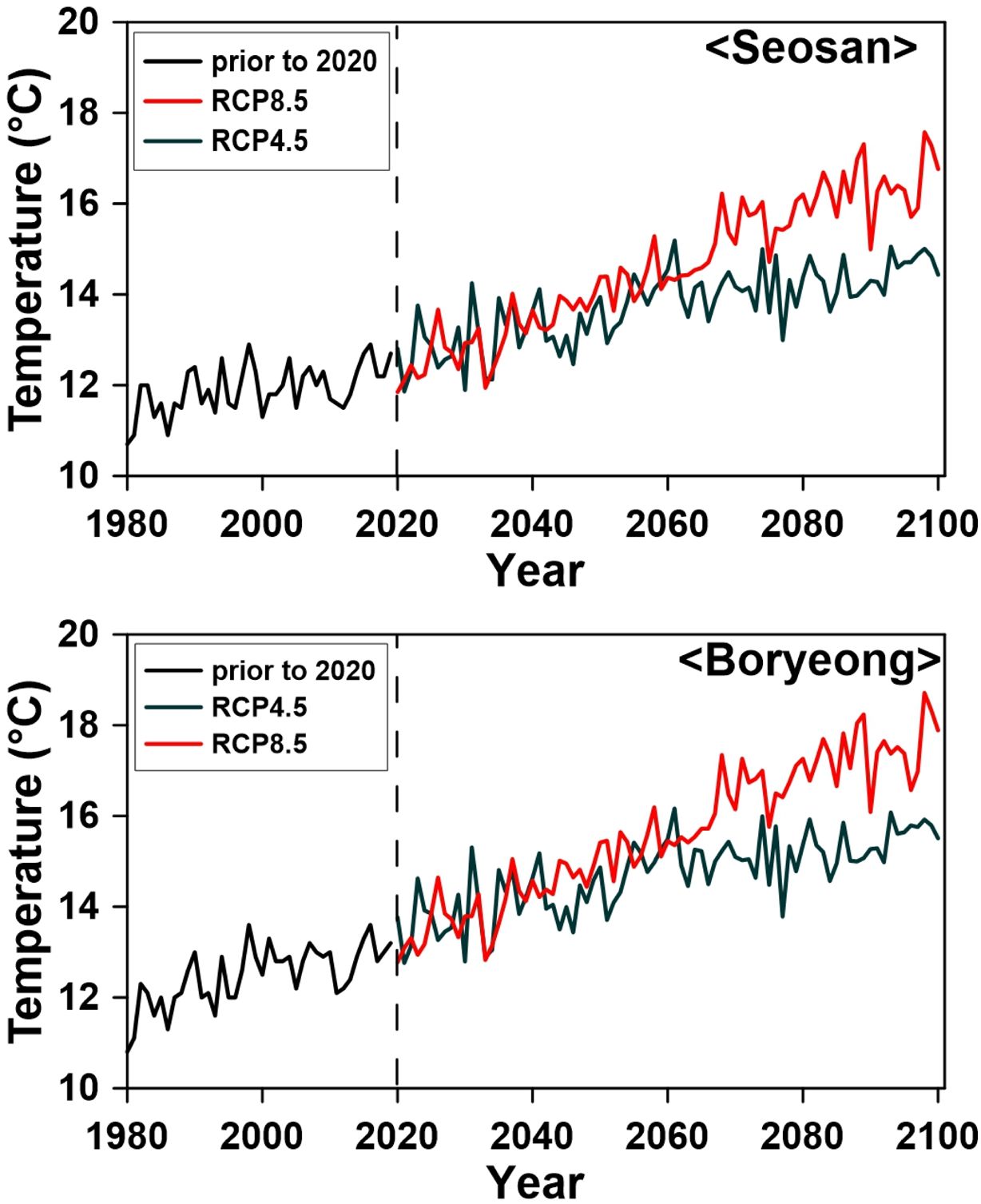 climate change RCP 4.5 and 8.5 scenarios were analyzed for Seosan and Boryeong