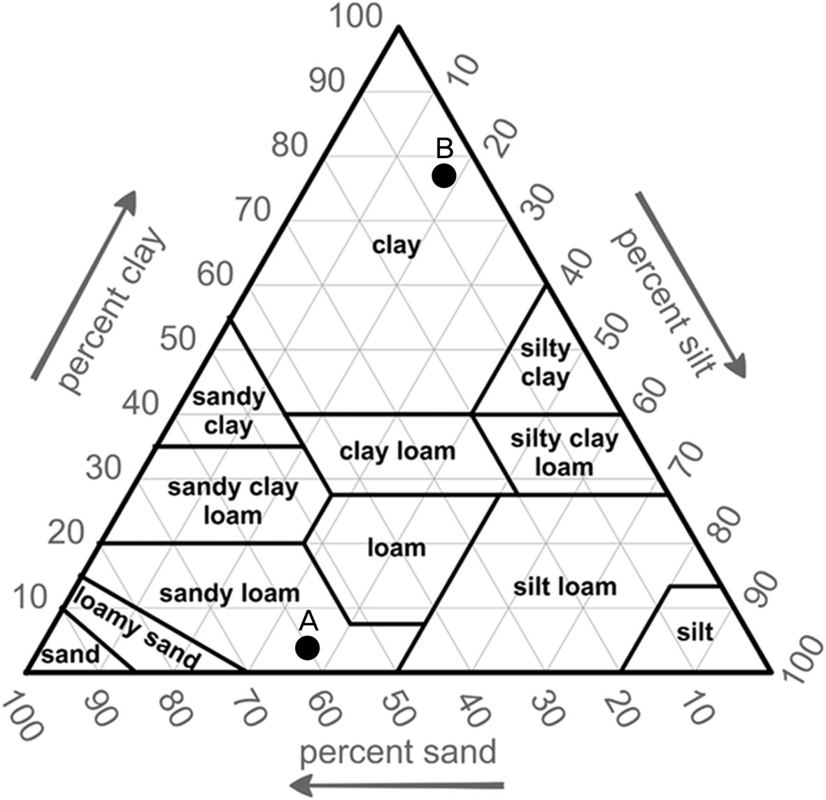 Fig. 1 Soil texture of study area (A:Cultivated soil, B: Paddy