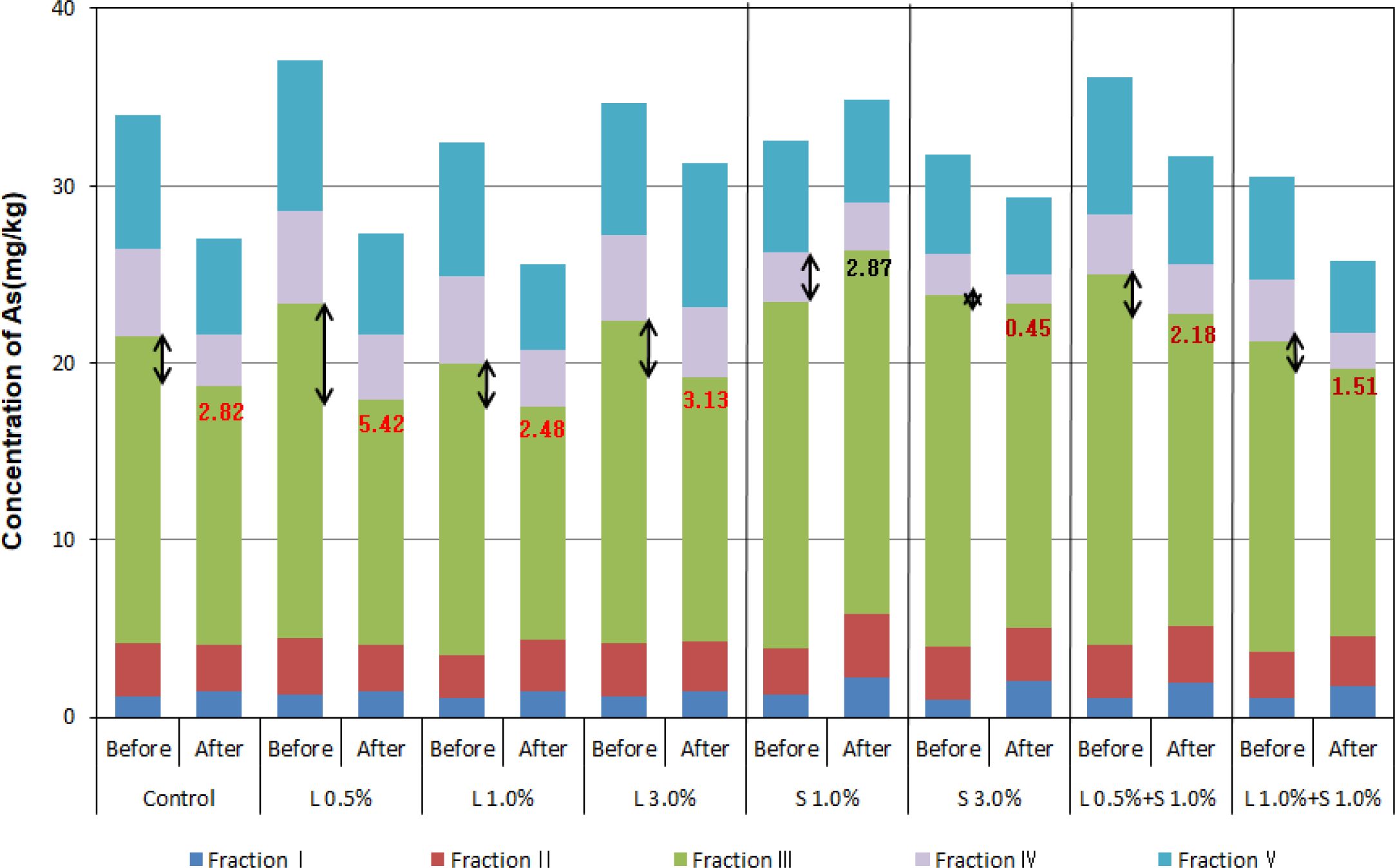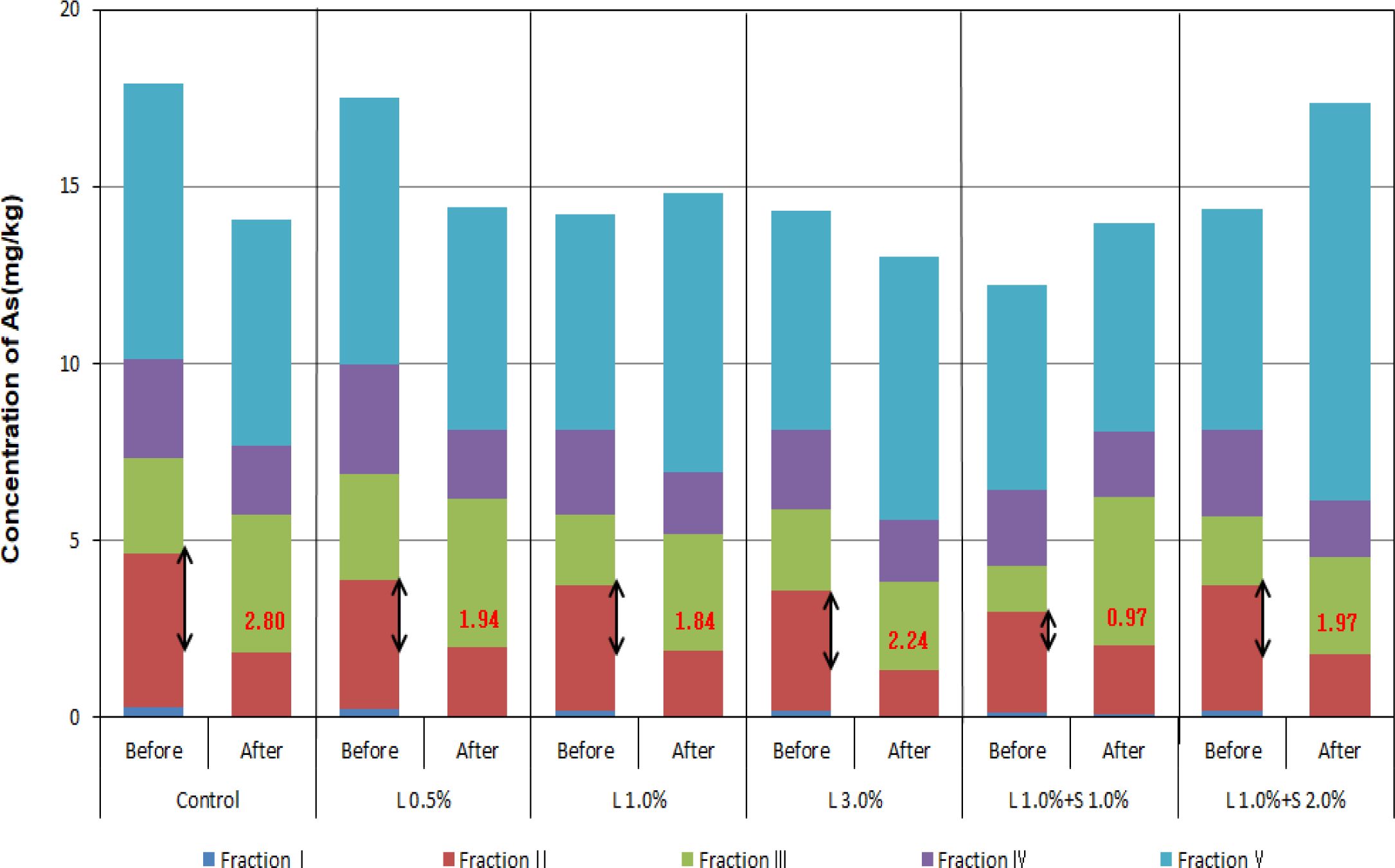 Fig. 3 Partitioning of sequentially extracted As concentrations in the paddy soil (Before and after the experiment). |