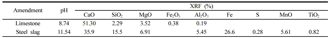 최근까지 국내에서는 중금속 오염 농경지 토양에 대한 안정화제 선정, 혼합비율 및 효율 등을 평가하는 연구가 주로 수행되었고(Jeon et al., 2010; Song et al., 2009; Jun and Oh, 2002; Koh et al., 2013;2015; Derakhshan-Nejad et al., 2017) 주로 안정화제를 적용한 오염 토양에서 농작물에 미치는 영향을 평가하는 연구가 수행되었다. 하지만, 이러한 연구는 안정화에 따른 착화합물 형성, 이온교환, 침전, 흡착 및 공침 등 다양한 메커니즘을 통한 효율 평가에 한정되었으며, 중금속 존재형태의 변화와 토양-식물간의 전이 특성을 평가하기에는 한계가 있었다.