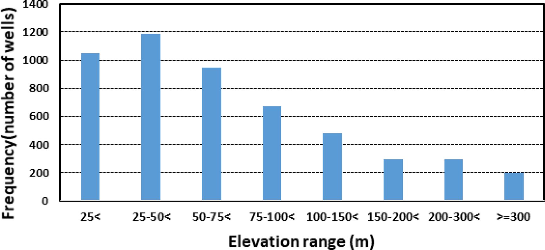 Fig. 3 Frequency distribution of wells in each elevation range. |