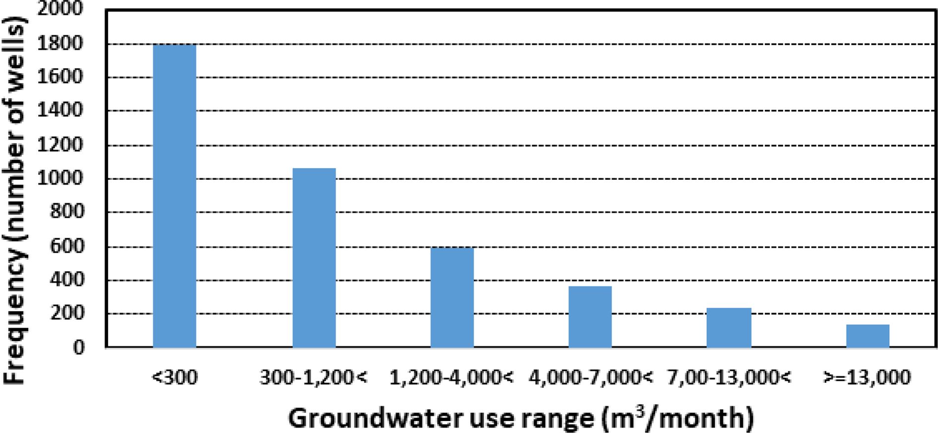 Fig. 5 Frequency distribution of wells in each groundwater use range. |