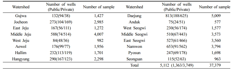 Table 1 Total number of wells and samples for analyzing groundwater quality in each watershed, Jeju Island |