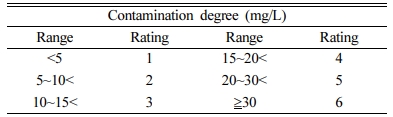 WELCUP 기준을 이용한 질산성질소 오염도는 아래와 같이 식(1)을 이용하여 계산하였다.