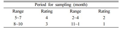 2.7. 시료 채수 시기(P, Period for sampling)